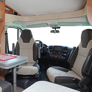 These blinds are designed to provide privacy and shade by covering the windows of the vehicle's cabin area.