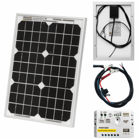 10W 12V solar trickle charging kit with 5A solar controller and battery cable with crocodile clips