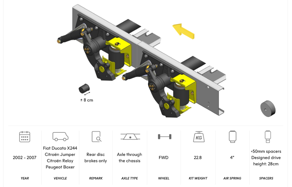 - AL-KO 02 TANDEM Air Suspension X244 2002-2006 Rear Disc Brakes Only, Axle Through The Chassis - 50mm Extra Height