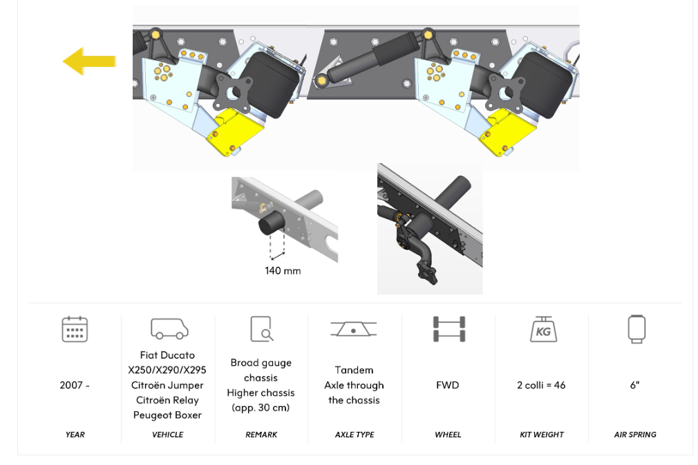 - AL-KO 07 TANDEM Air Suspension Broad Gauge Chassis 60mm-80mm Extra Height, Axle Through The Chassis 2007 onwards