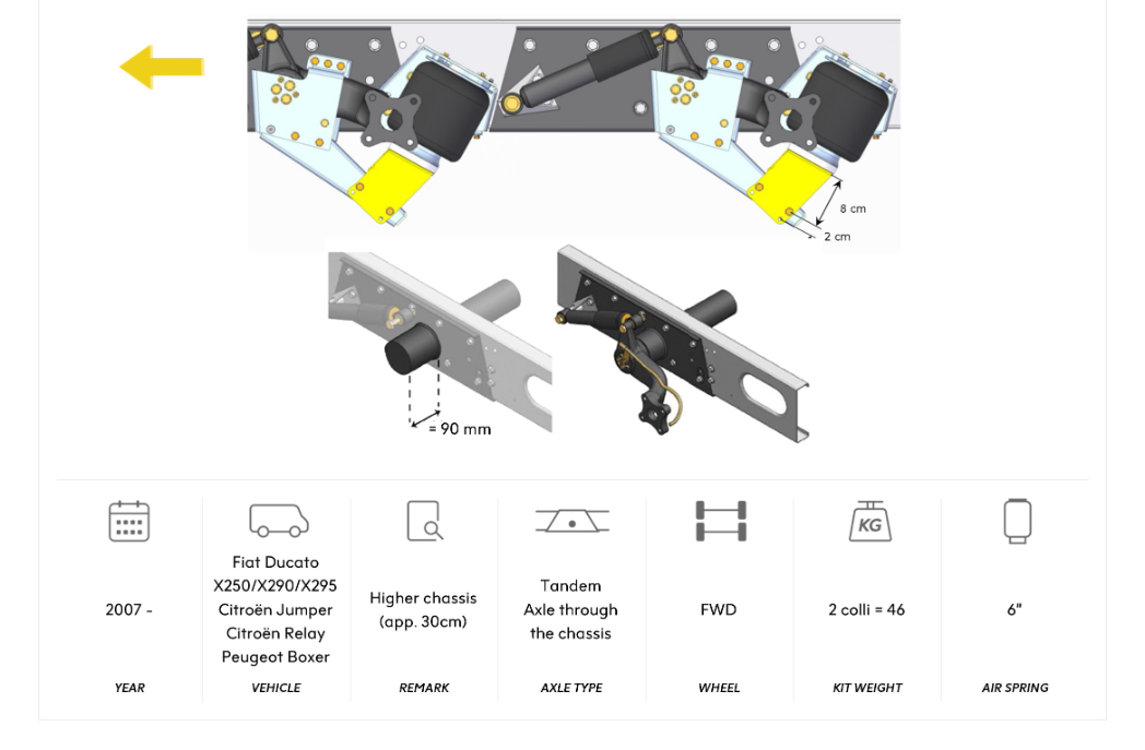 - AL-KO 07 TANDEM Air Suspension Heavy Duty 60mm-80mm Extra Height, Axle Through The Chassis 2007 onwards