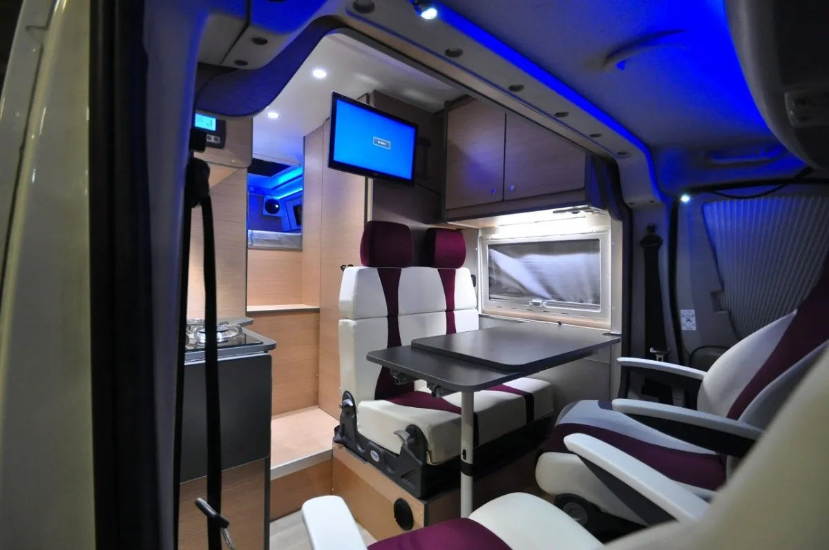 The 505 series in an M1 approved 2 seat bench seat with 3 point seat belts integrates. The 505 folds out to make a double bed. The backrest is fully adjustable and the seat benefits from side runners which, when in the bed position, allows the user to make a wider bed. Available trimmed in FASP's fabric, the customers fabric or untrimmed in kit form.