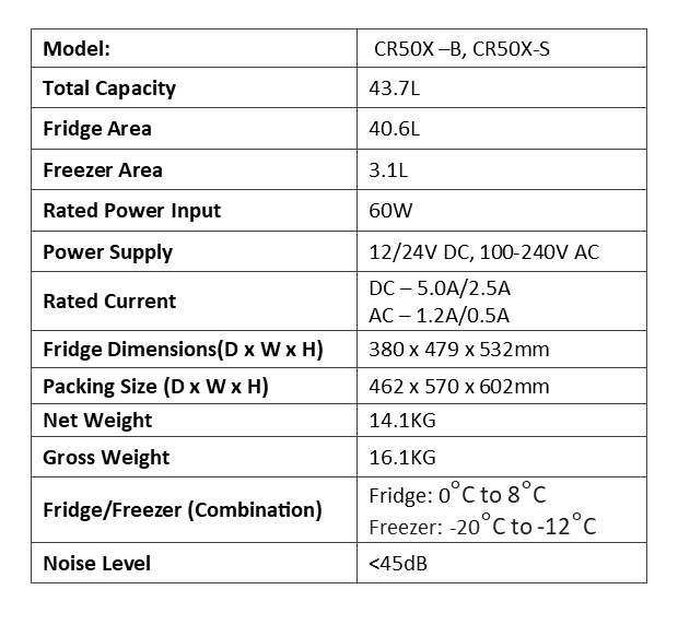The CR50X is designed specifically for campervans, RVs and motorhomes. Perfect for a compact kitchen space, it boasts exceptional cooling capabilities