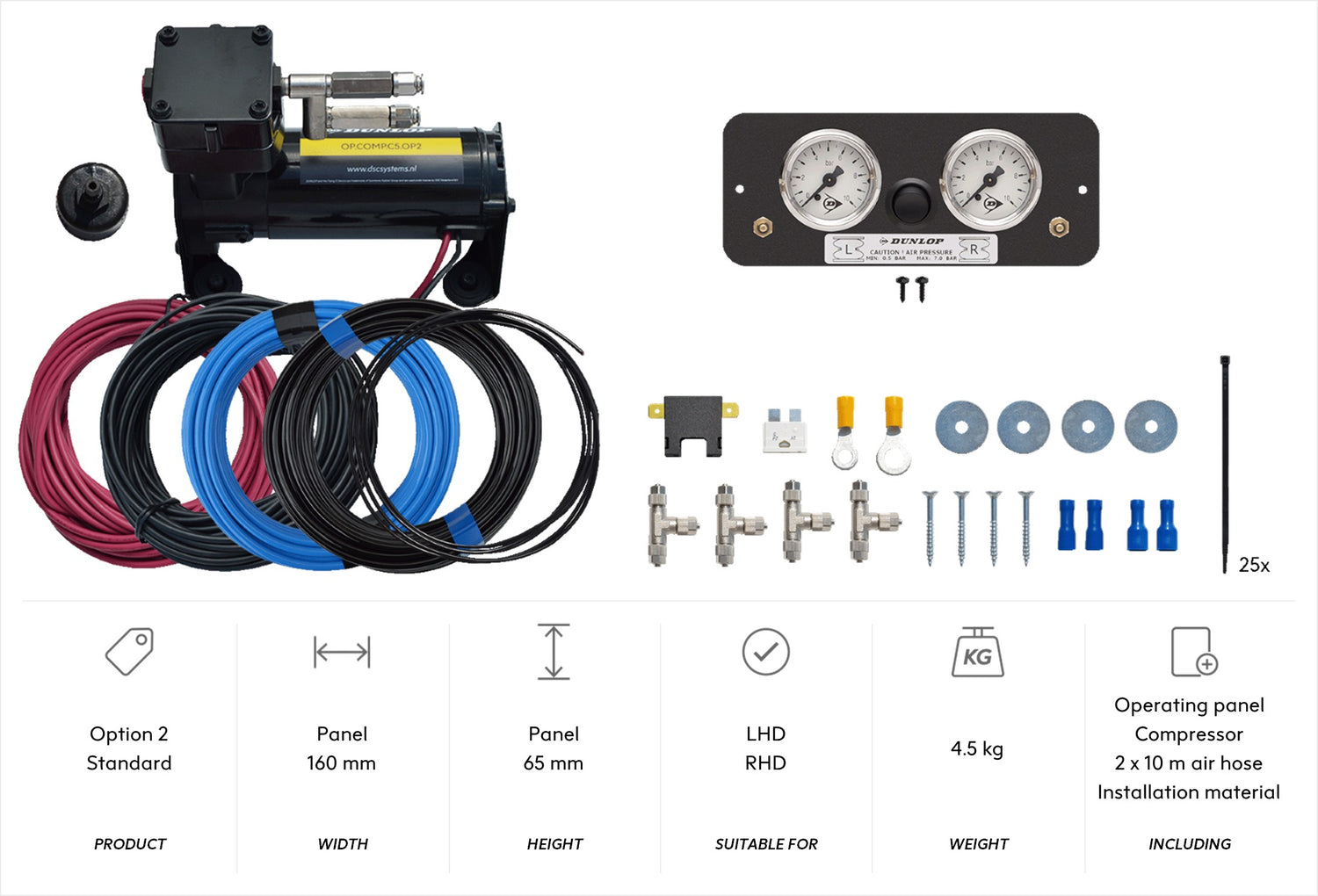 Comes with a mountable compressor kit that can be initiated via the flick of a switch on the dual gauge panel inflating both bellows simultaneously. Each bellow can then be deflated individually to a pressure that suits. This allows for a more comfortable experience as you have access to inflation and deflation from the comfort of your cab without having to remember to bring a portable air compressor or stop at a garage to fill up.