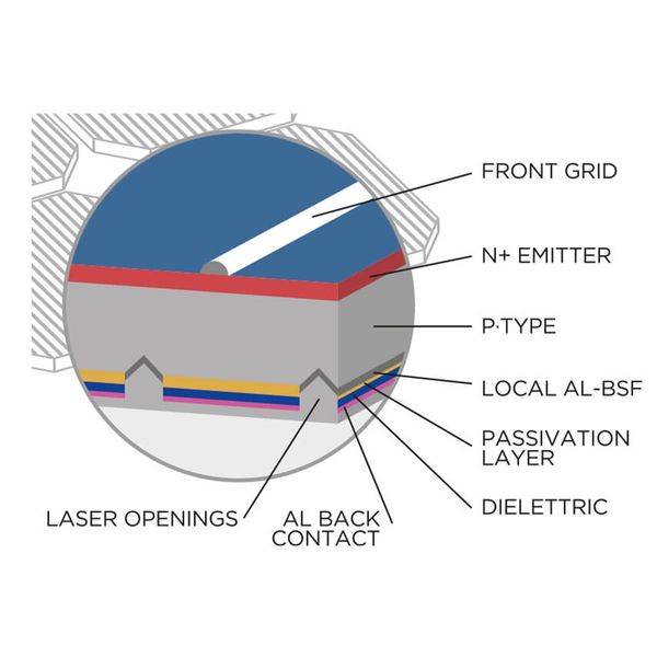 Passivated Emitter and Rear Cell (PERC): a new technology to increase energy conversion efficiency by adding a passivated dielectric layer to the rear of the cell.