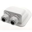 White plastic water-tight housing, for solar panel wiring. The Solar feed gland will accept a cable size of between 7 to 12mm outer diameter.